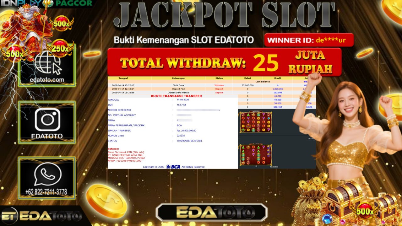 Selamat Kepada Pemilik user ID : De****ur Hari/Tanggal : Selasa / 14 APRIL 2026 Jackpot : Rp, 26,254.851 JT Withdraw . . .