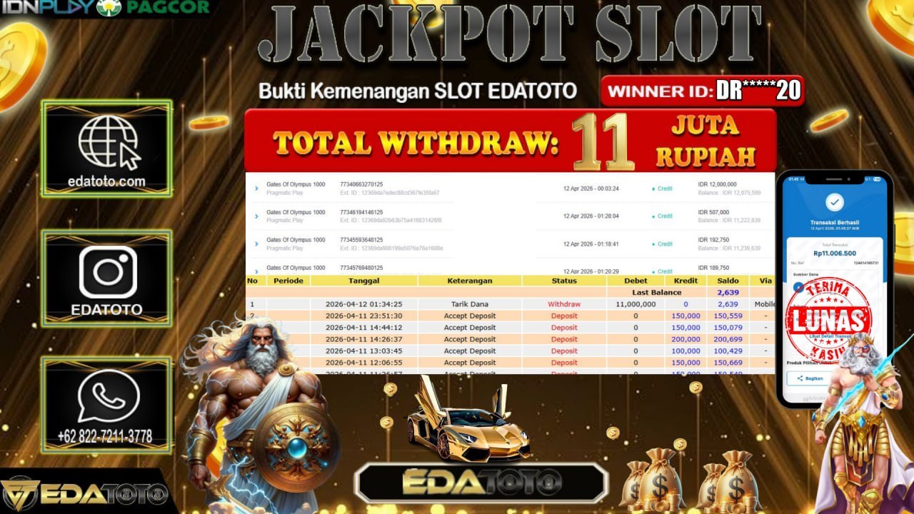 Selamat Kepada Pemilik user ID : DR*****20 Hari/Tanggal : Sabtu / 11 APRIL 2026 Jackpot : Rp, 12,000.000 JT Withdraw . . .