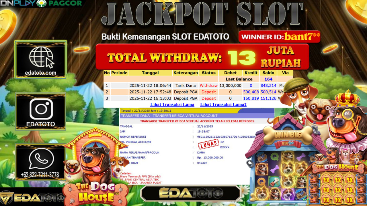 Selamat Kepada Pemilik user ID : bant7** Hari/Tanggal :Minggu / 21, November 2025 Jackpot : Rp. 13.683.800 JT Withdraw :13,000,000 . . .