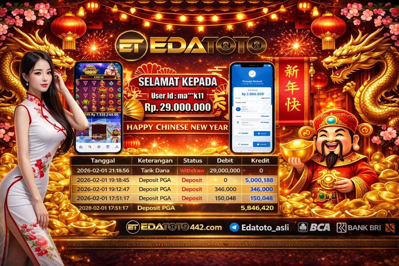 Selamat Kepada Pemilik user ID : Ma***k11 Hari/Tanggal :senin/ 2 februari 2026 Jackpot : Rp. 29,000,000 JT Withdraw : 29,000,000 . . .