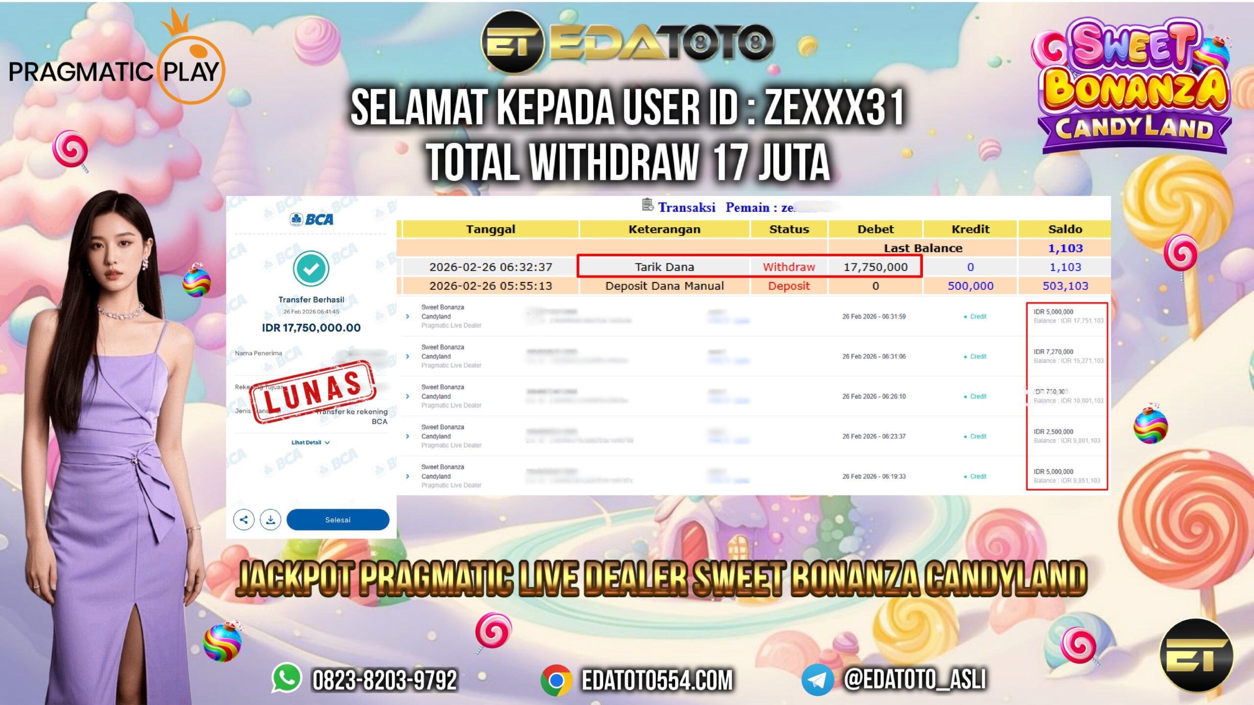 Selamat Kepada Pemilik user ID : ZT***1 Hari/Tanggal : Rabu / 25 februari 2026 Jackpot : Rp, 31,000,000 JT Withdraw . . .