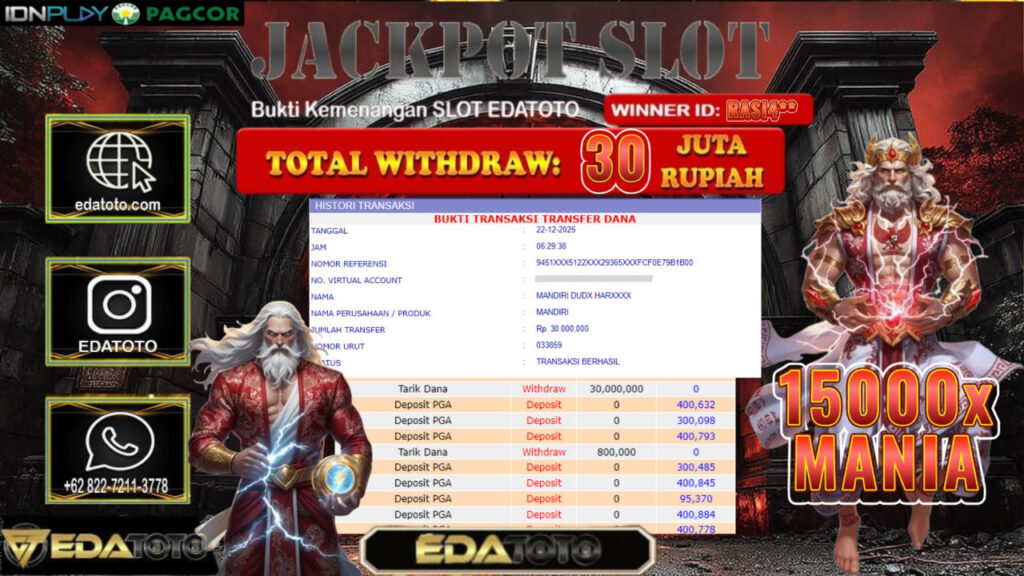 Selamat kepada member setia EDATOTO telah mendapatkan JP Bermain Di : 15.000X Mania