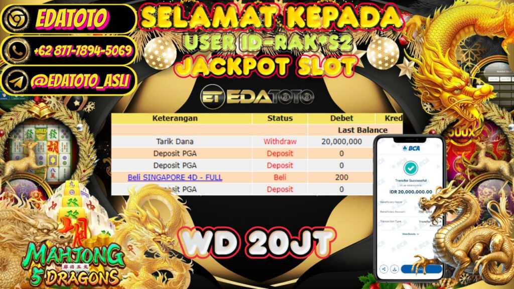 Selamat kepada member setia EDATOTO telah mendapatkan JP Bermain Di :Mahjong 5 Dragons
