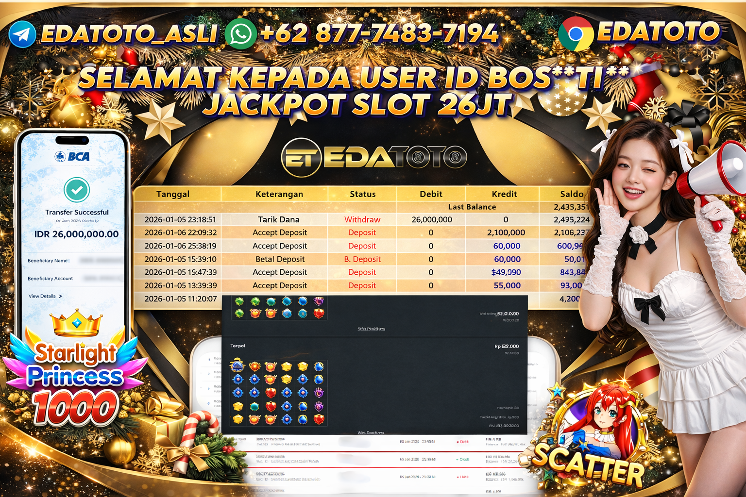 Selamat kepada member setia EDATOTO telah mendapatkan JP Bermain Di : Starlight Princess 1000