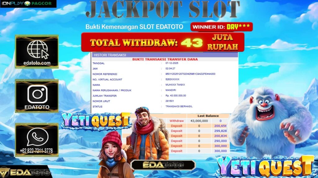 Selamat kepada member setia EDATOTO telah mendapatkan JP Bermain Di : Yeti Quest